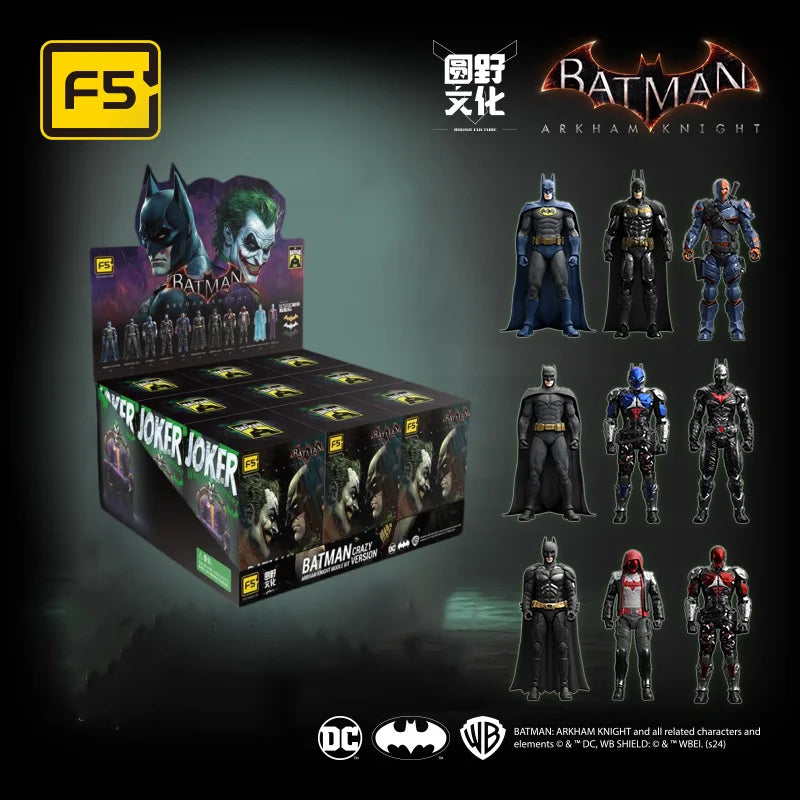 Dive into the chaos of Gotham with the F5 ROUNDD CULTURE Crazy Edition blind box, featuring mystery action figures of Batman vs. Joker from the Arkham Knight universe—perfect for collectors and fans alike.