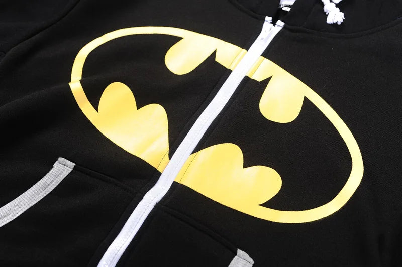 Cozy hood with bat ears and printed bat emblem for a fun superhero look