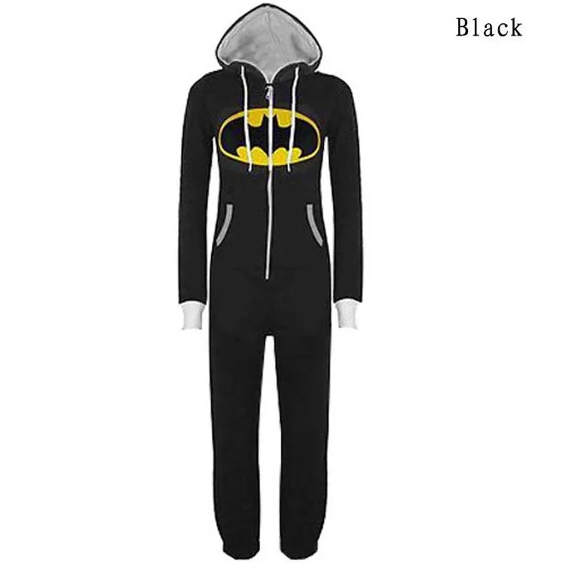 Stay cozy and heroic with the HKSNG unisex bat onesie — a warm, printed kigurumi-style sleepsuit perfect for lounging, sleeping, or costume parties!